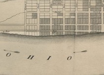 Image 1: Daniel Drake, Natural and Statistical View, or Picture of Cincinnati and the Miami Country, Illustrated by Maps, 1815. Map of Cincinnati showing a structure between Elm and Race Streets. (R.B. 917.714 D761, 1815, Cincinnati Museum Center)