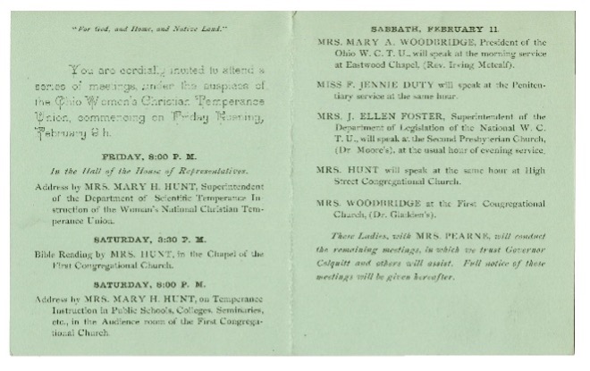 Image 6a: Invitation for the Ohio Women’s Christian Temperance Union meeting, ca.1870s. (Temperance and Abstinence folder, Ephemera Collection, Cincinnati Museum Center)