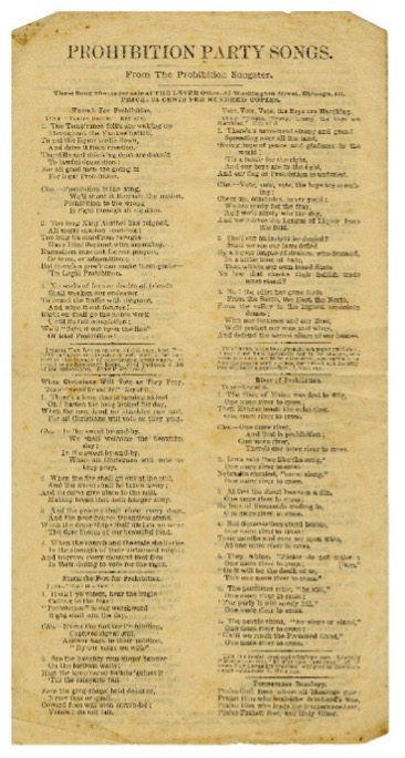 Image 8b: “Prohibition Party Songs,” n.d. The Prohibition Party was founded in 1869 and has nominated a candidate in every presidential election since 1872. (Temperance and Abstinence folder, Ephemera Collection, Cincinnati Museum Center)