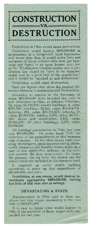 Image 9e: Anti-Prohibition pamphlet, Ohio Home Rule Association, ca. 1915. (Temperance and Abstinence folder, Ephemera Collection, Cincinnati Museum Center)