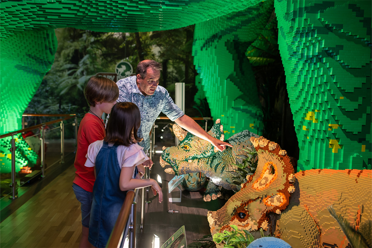 Featuring more than 50 massive dinosaurs, iconic scenes and interactive props made from over six million LEGO® bricks, Jurassic World by Brickman® invites you to relive the magic of beloved stories and characters from the Jurassic World franchise as you embark on a thrilling journey across Isla Nublar.