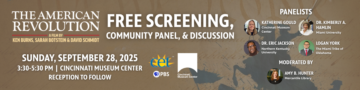 THE AMERICAN REVOLUTION, a six-part, twelve-hour series on America’s founding struggle, will present the story of the men and women of the Revolutionary generation, their humanity in victory and defeat, and the crisis that they lived through. This free screening includes a 30-minute compilation of gripping moments across the 12-hour series, plus a panel discussion with prominent historians and American Revolution scholars.